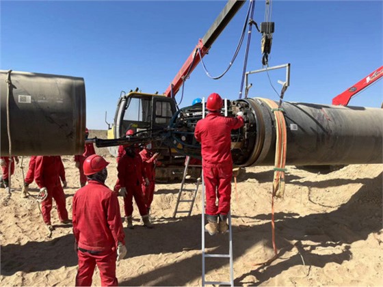 西气东输四线工程是继西气东输一线、二线、三线管道之后,连接中亚和中国的又一条能源战略大通道,管道全长约3340公里,管径1219毫米,设计压力12兆帕。建成后,将与西气东输二线、三线联合运行,届时西气东输管道系统年输送能力可达千亿立方米。是国家“十四五”石油天然气发展规划重点项目,2022年9月28日,该工程已正式开工。接下来让我们一起来到这条管线,去找寻熊谷蓝(熊谷管道全自动焊机)的身影。